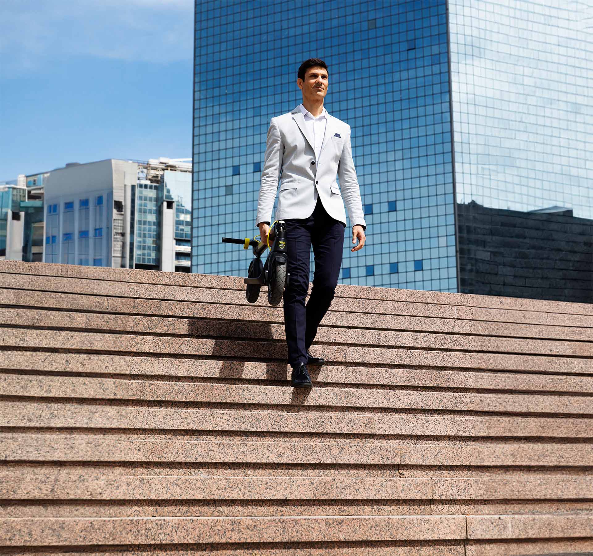 The aluminium alloy is used in the aeronautical field and is very resistant to impact and corrosion. At the same time, it is made with very light materials. The weight of the scooter is 12.5 kg, among the lowest in the category.